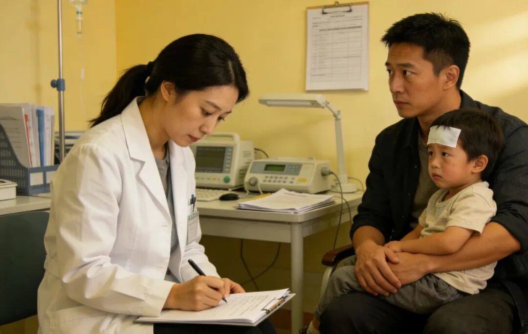 终于轮到他们了。他推开急诊室的门,抱着孩子往里走。